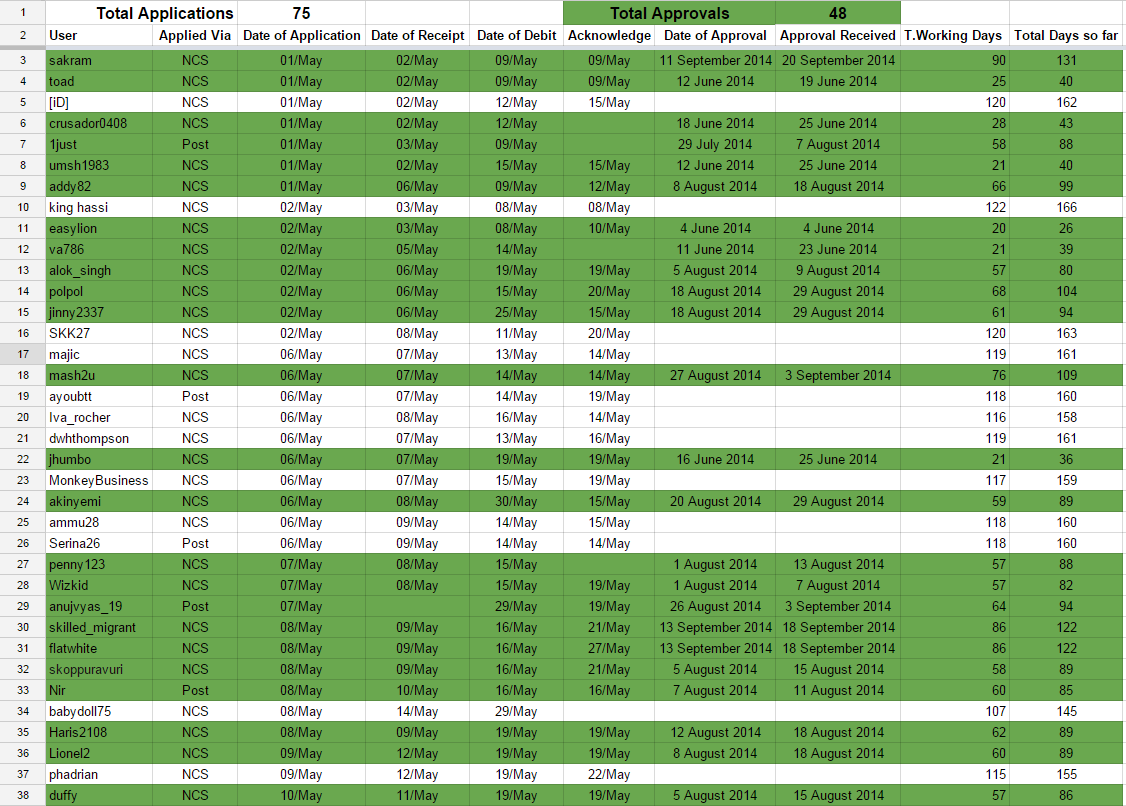 Month of May approval getting very slow now. last approval was 09/10/14 rcv 22/10/14 in this immigration boards. :o