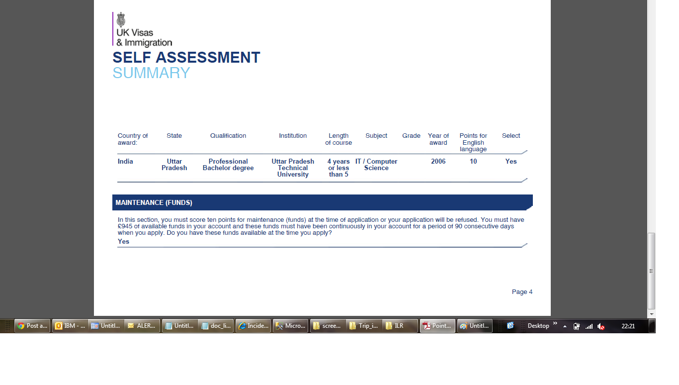 > Entered UK on the morning of 01-Dec-2009 with a job offer in hand.
